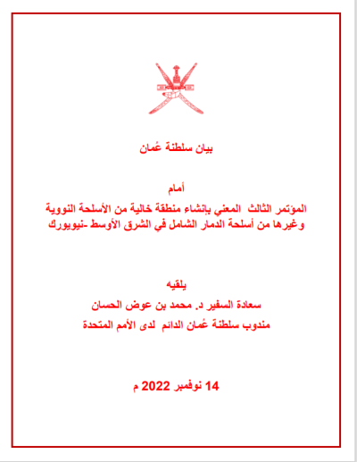 Statement by Oman at the Fifth Session of the Conference on the Establishment of a Middle East Zone Free of Nuclear Weapons and other WMD